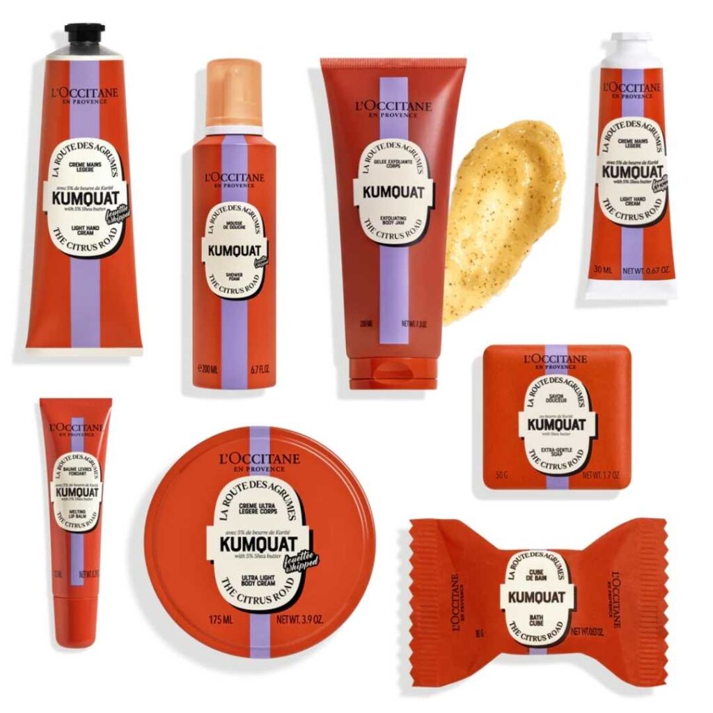 • Espuma de Ducha Karité Kumquat (200ml): Limpia delicadamente la piel, dejándola perfumada con un aroma cítrico revitalizante.